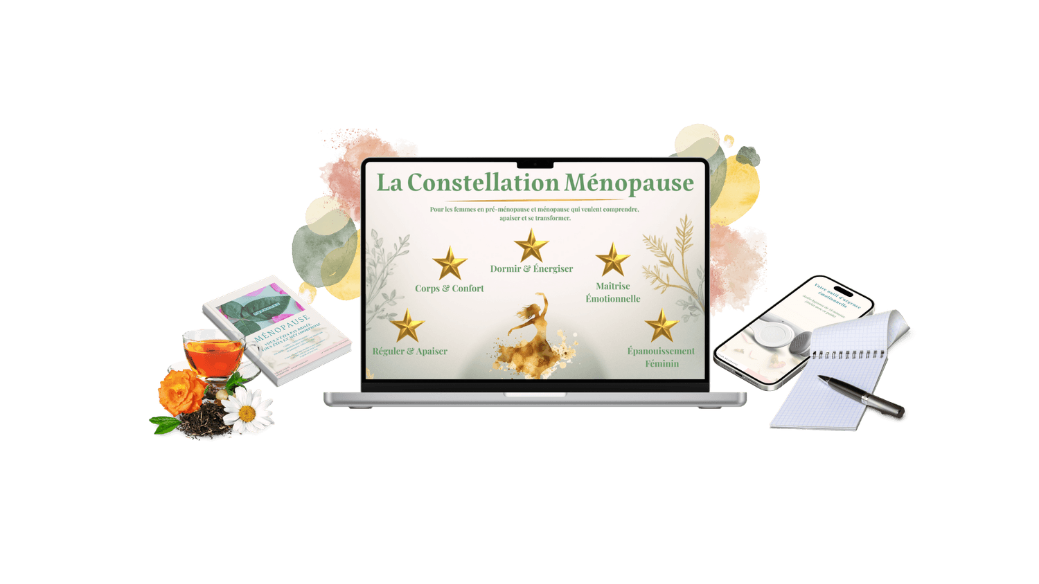 Avec La Constellation Ménopause, j’ai voulu créer un lieu rassurant et structuré, où chaque femme peut avancer à son rythme et retrouver un véritable sentiment d’apaisement et de maîtrise.